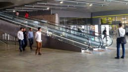 Escaliers mécaniques pour gares ferroviaires, stations de métros et bâtiments dans lesquels les escaliers font partie d’un système de transport en commun, ou avec un trafic réel très intense.